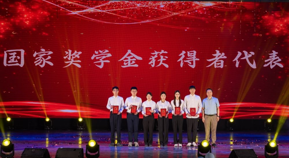生润生生涯奖学金获得者颁奖,党委保卫部、安全管理处部(处)长李荣光为国家奖学金获得者代表颁奖,教务处处长、教学质量与评估办公室主任、招生办公室主任陈贞翔为科创竞赛国家级奖励学生代表颁奖,校团委书记胡春毅为福利姬