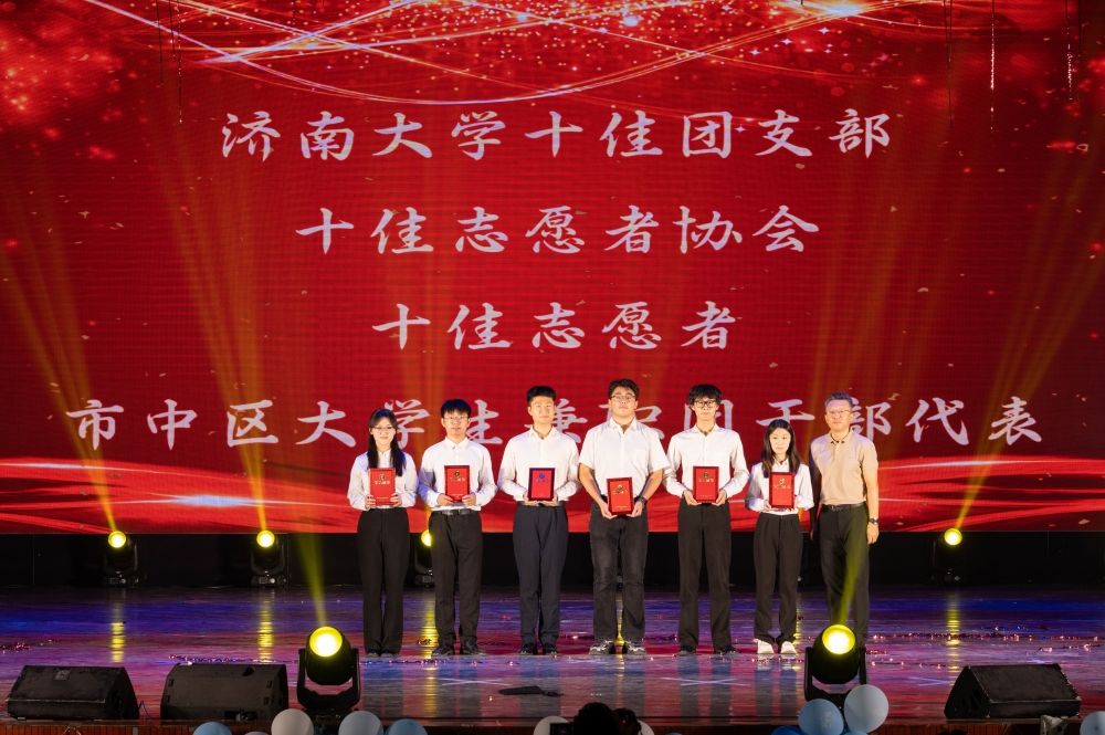 十佳团支部、十佳志愿者协会、十佳志愿者、市中区大学生兼职团干部代表颁奖,党委宣传部文化中心主任赵华磊和党委学生工作部(处)副部(处)长马杰共同为优秀毕业生代表颁奖。