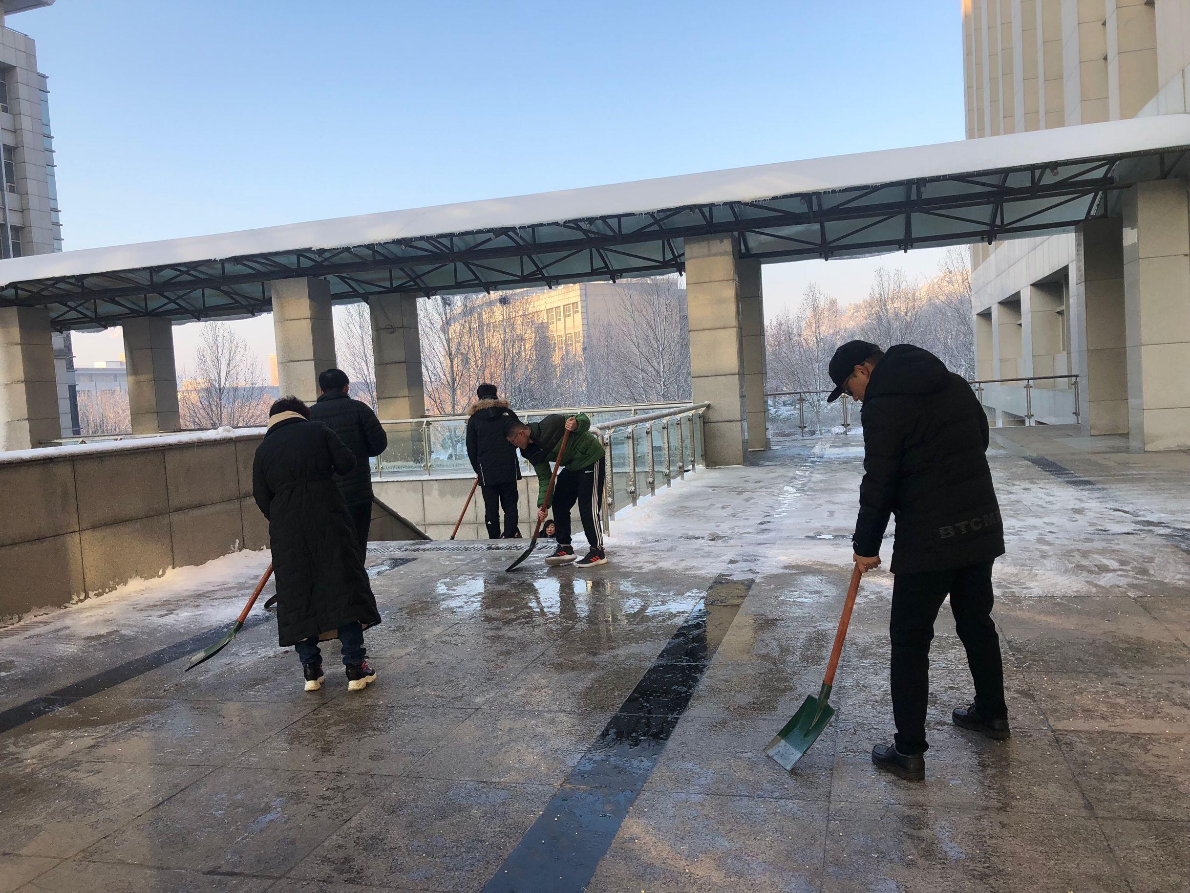 领导班子带领学院部分教职工以及学生志愿者积极行动起来,开展扫雪除冰活动,清除学院主干道和周围积雪,方便师生出行。大家手拿铁锨、扫帚等工具,从教学楼前开始,依次沿楼前东西通道、教学楼北侧逐一清理积雪。扫雪现场,老师们齐心协力,配合默契,干得热火朝天。虽然室外温度很低,但大家劳动的热情和团结协作的力量让这个冬日变得格外温暖。经过大家的努力,学院周围道路上的积雪基本清扫干净,为全院师生开辟了一条洋溢着暖暖温情的方便之路,保证了全院师生的出行安全,也呈现出来自学院的温暖和人文关怀。