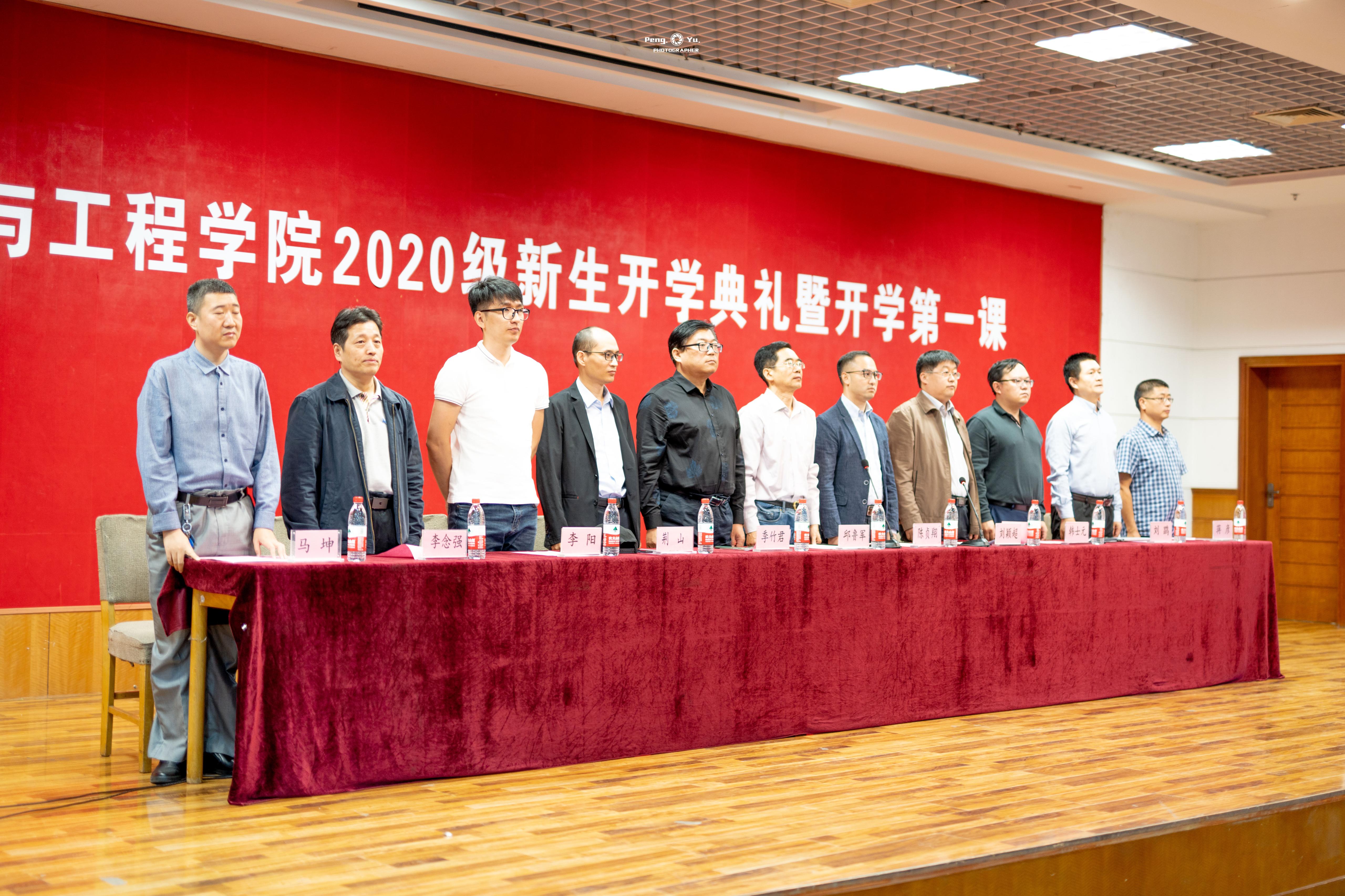 2020级新生开学典礼在第二报告厅举行,本次典礼采用线上与线下相结合的方式,多个会场“同屏”进行。学院党委书记邱鲁军,院长陈贞翔,正处级组织员季竹君,党委副书记、副院长刘颖超,副院长荆山,副院长韩士元,各系系主任,学生工作办公室相关老师以及2020级全体新生参加开学典礼。典礼由党委副书记、副院长刘颖超主持。