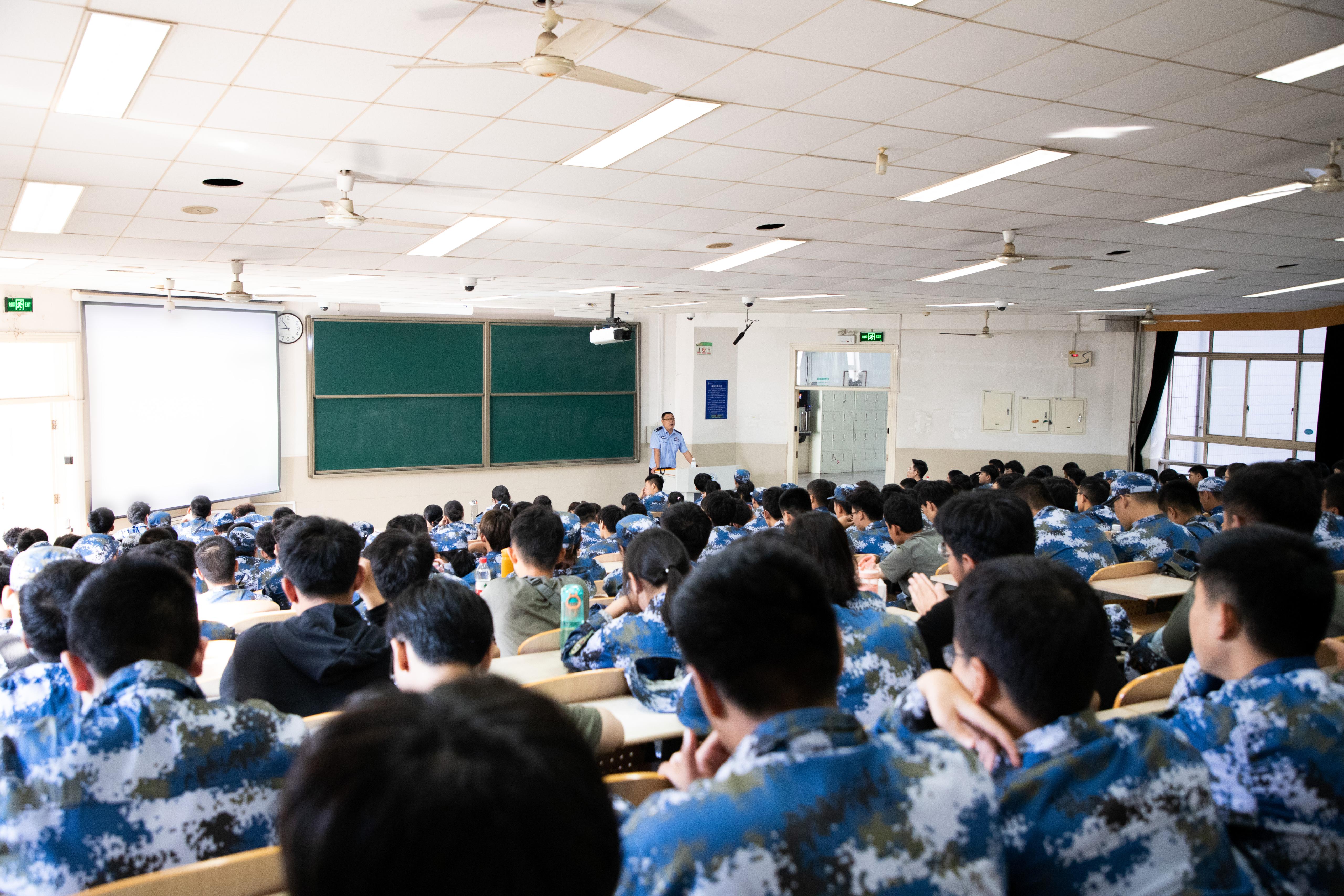 邀请七贤派出所张明明警官为2021级全体新生开展防范电信诈骗安全教育专题讲座。