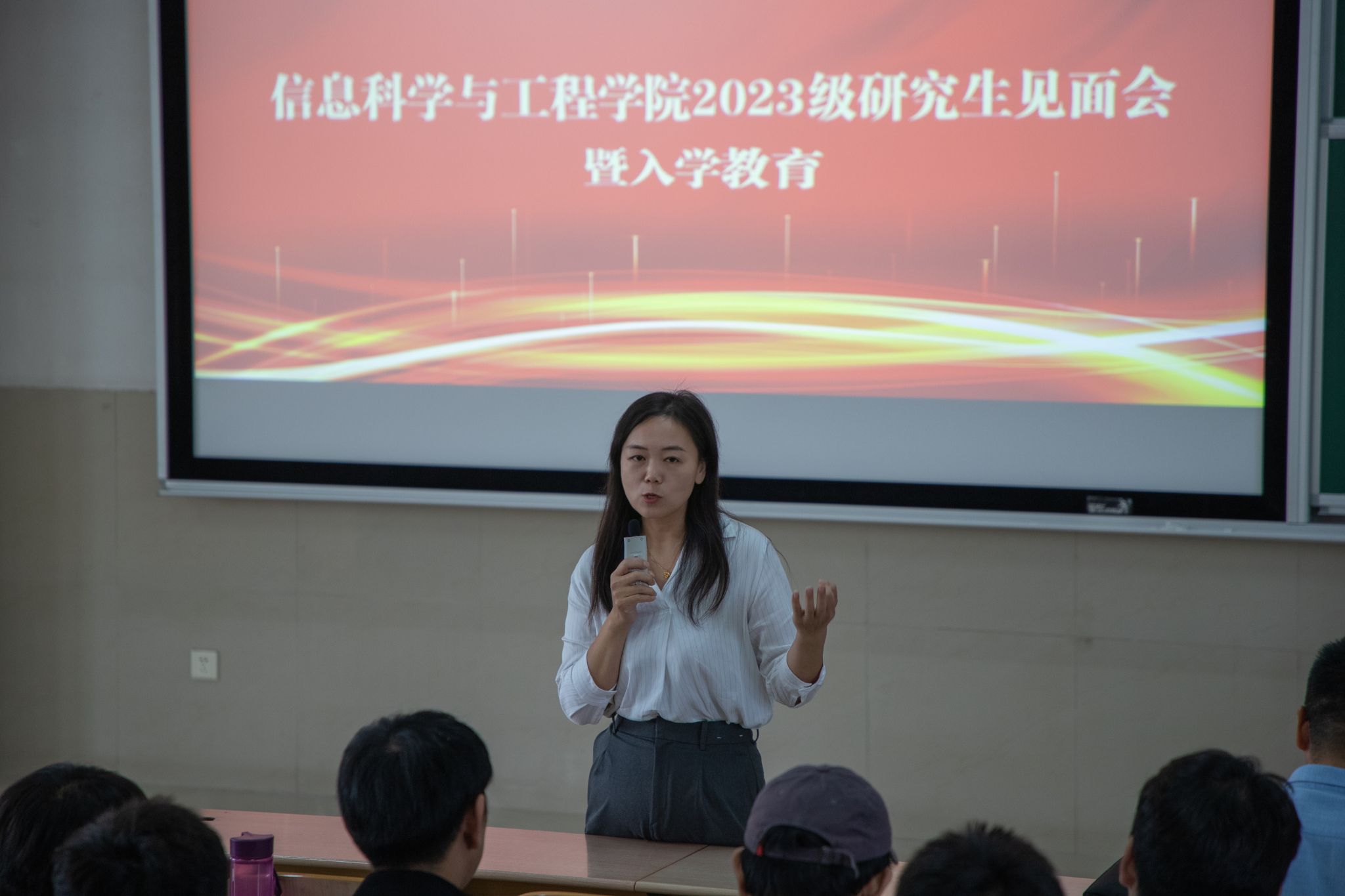 2023级研究生新生见面会暨入学教育在11教6302举行。学院党委书记夏卫东、副院长荆山、副院长杨晓晖、教师代表以及全体2023级研究生参加本次见面会。会议由学办主任付颖颖主持。