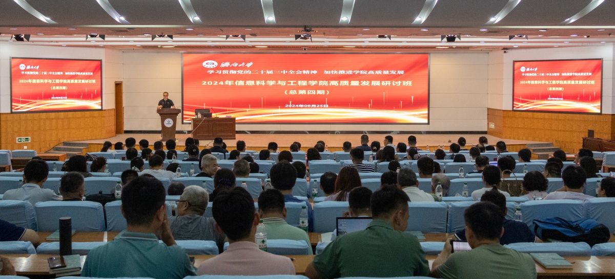 开班式上,陈月辉对学院连续四年举办高质量发展研讨班给予高度评价和充分肯定,对学院教职工在学科建设、专业建设、师资队伍建设和平台建设等领域付出努力取得的好成绩表示感谢。他对全体教师提出四点希望和要求:一是不断深入落实以学生为中心的教育教学改革,努力培养学生成为适合未来技术发展的具有可持续竞争力的高层次人才。二是进一步凝练学科研究方向,坚持问题导向,勇于改革创新,开展有组织的科研,提升人才培养质量,推进学院计算机学科建设再上新台阶。三是主动担当作为,持续优化学科布局,以学科交叉和协同创新为基础,在大项目、大奖、高水平成果转化等方面明确任务,开展跨学院、跨学科协作,为学校学科建设贡献力量。四是明确自身在社会服务中的战略定位,主动对接行业领军企业,深化产教深度融合,实现资源共享、优势互补,共同攻克技术难关,推动产业升级,全面提升学院社会服务能力。