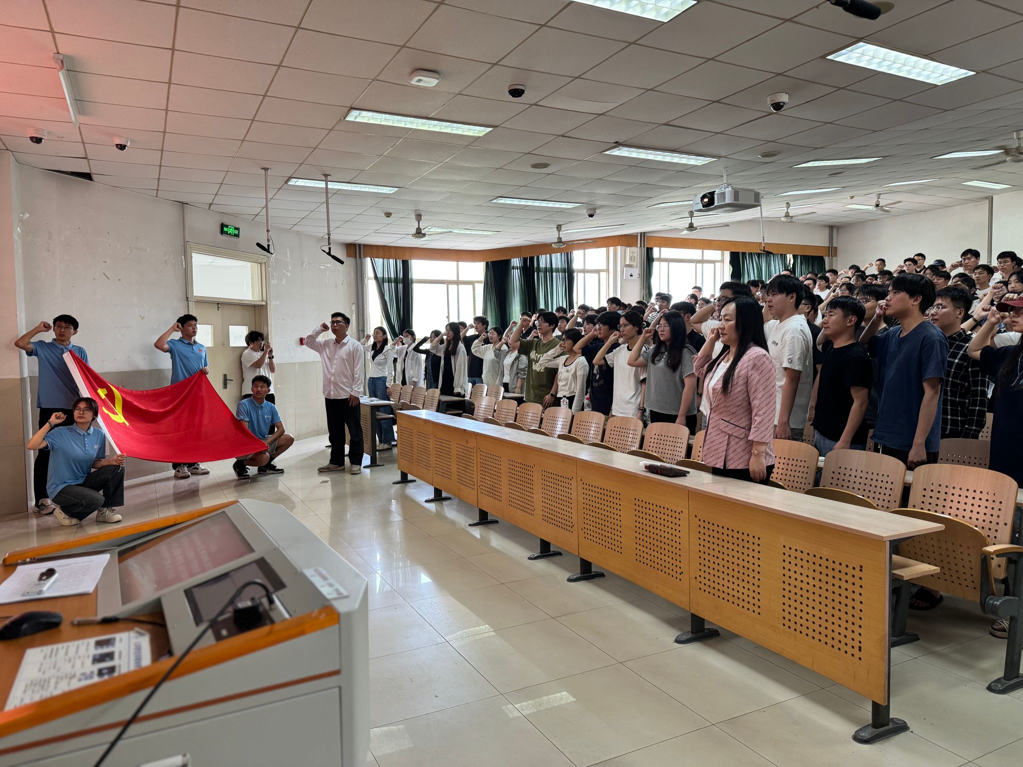 党课结束后,为激励毕业生党员坚守初心使命、恪守廉洁之风,学院组织235名毕业生党员重温入党誓词。铿锵有力的宣誓声响彻会场,这一庄严仪式,既是对初心使命的再次叩问,更是踏上新征程的郑重承诺,彰显着新时代党员传承红色基因、永葆政治本色的坚定信念。
