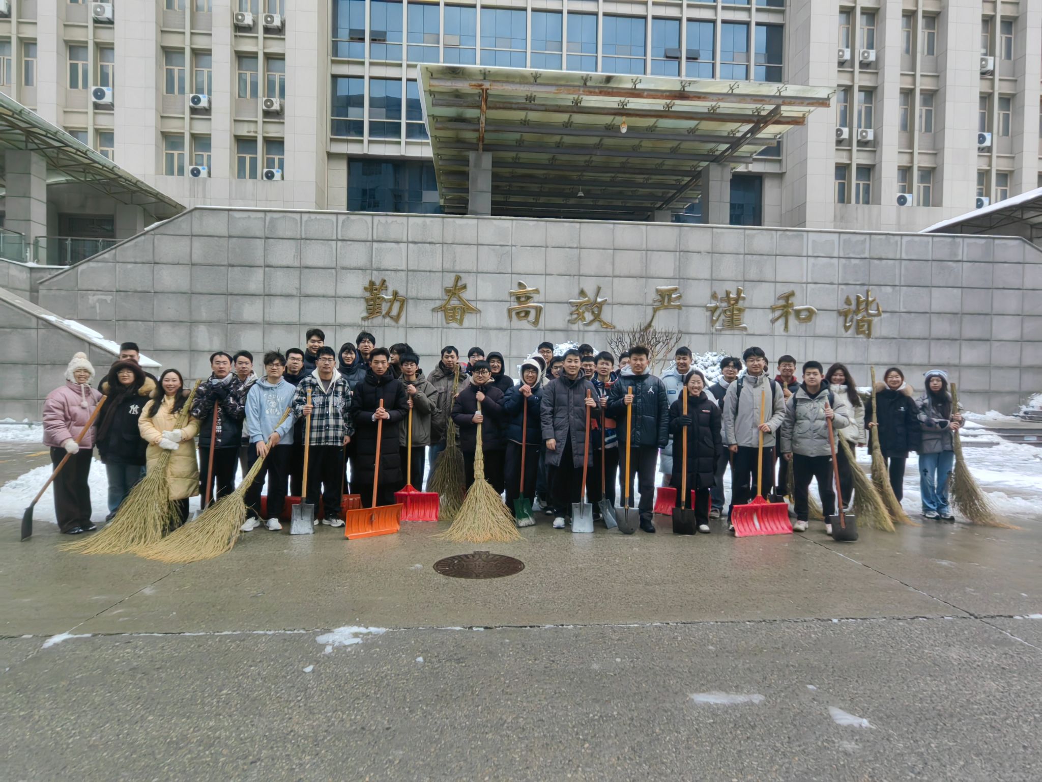一名党员就是一面旗帜。此次扫雪除冰行动不仅是一次志愿服务,更是一次生动的党性教育实践。面对极端天气,广大师生党员用实际行动“当先锋,做表率”,展现了新时代党员的责任与担当。今后,学院党委将继续发挥党建引领作用,带领全体师生党员在实际行动中践行初心使命,为营造和谐、稳定的校园环境贡献力量。