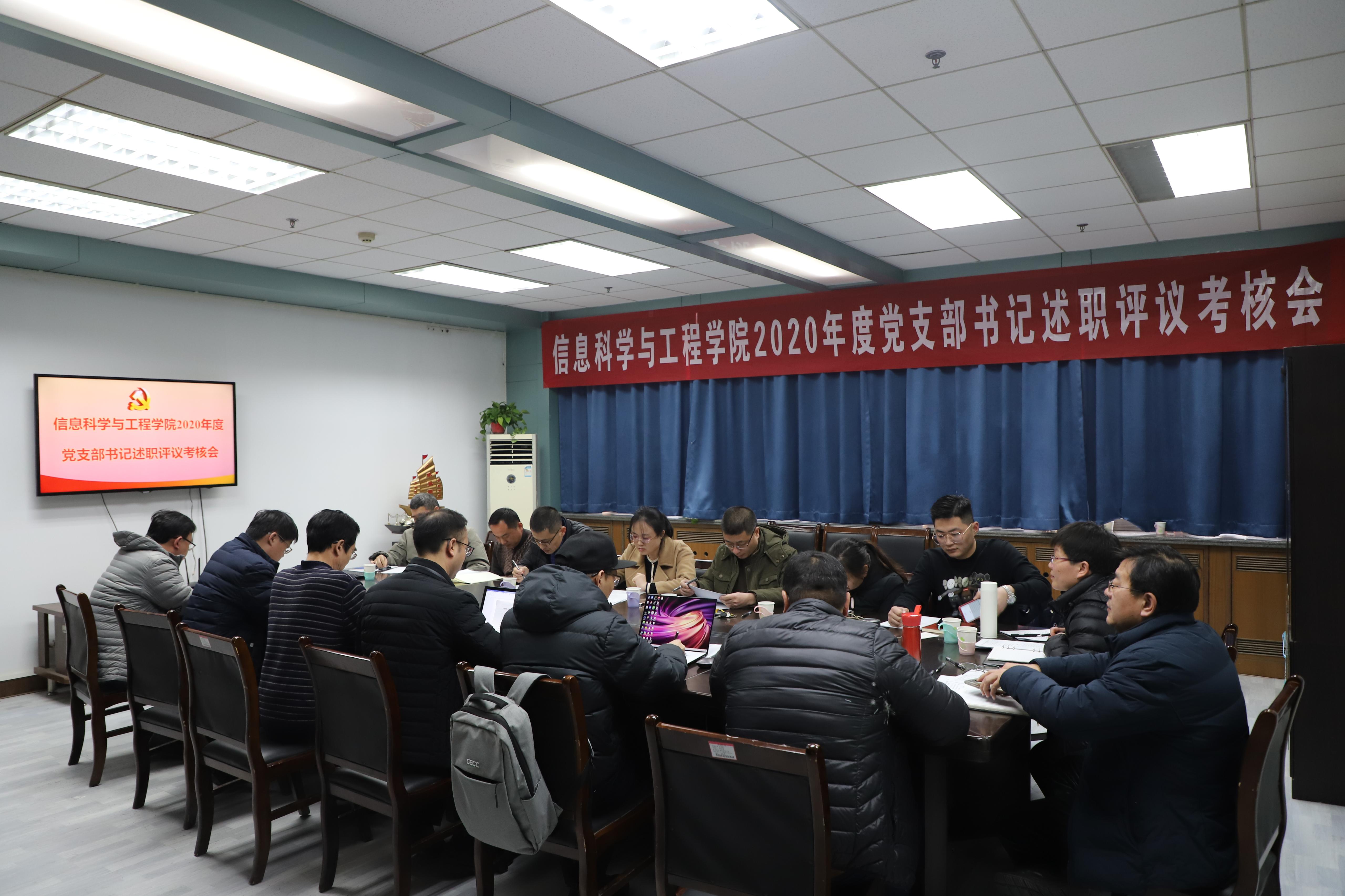 党委召开2020年度党支部书记履行全面从严治党责任和抓基层党建述职评议考核会。学院党委领导班子成员、5位教工党支部书记和5位学生党支部书记参加考核会。会议由院长陈贞翔主持。