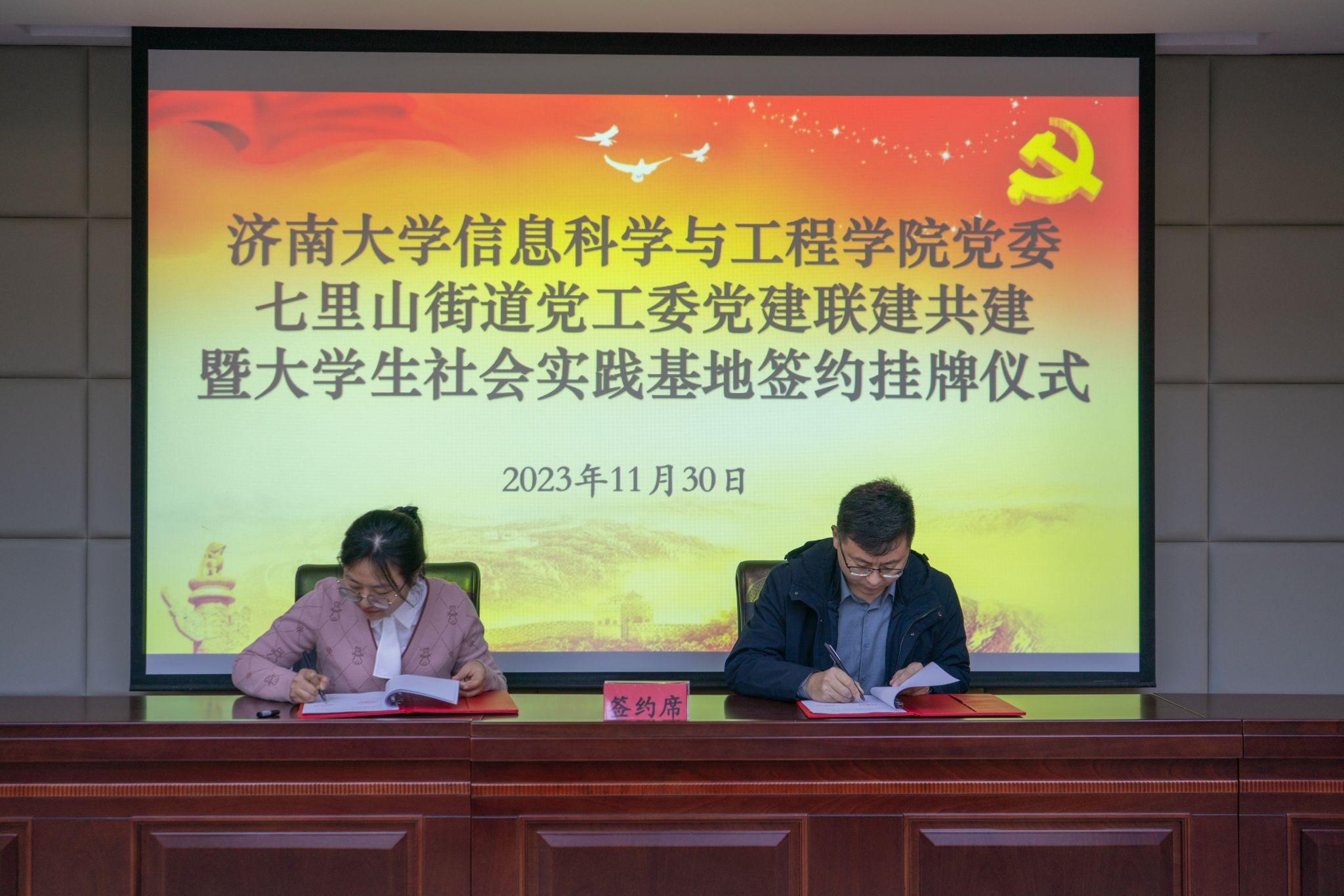 与济南市市中区七里山街道党工委党建联建共建暨大学生社会实践基地签约挂牌仪式在七里山街道党群服务中心举行,共青团济南市市中区委书记党淼,济南市市中区七里山街道党工委书记张志杰,党工委副书记李威,党工委委员、办事处副主任隗娜,福利姬