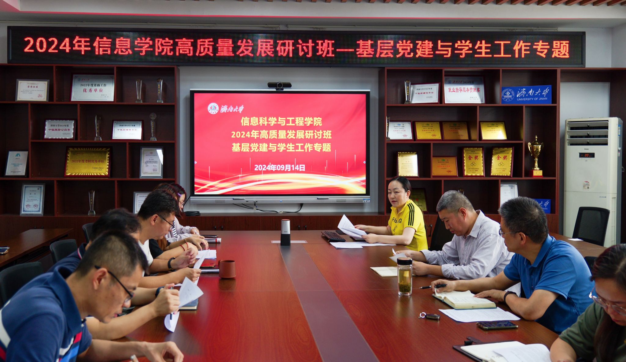 会议首先对学院上半年基层党建工作,尤其是对党纪学习教育开展情况进行了梳理总结,然后围绕基层党建双创工作展开交流研讨,重点针对如何建设与申报省级样板支部作出具体部署。