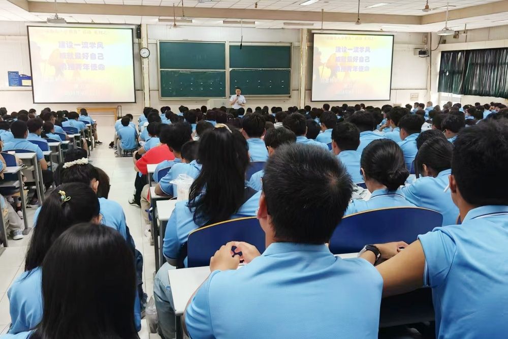 随后,夏卫东以“建设一流学风,做最好的自己,勇担青春使命”为主题,为2024级新生讲了“开学第一课”。他从学风建设、目标建立、学业规划、未来发展和当代青年的责任使命与担当等方面与新生分享,希望新生不忘初心、牢记使命,努力奋斗,努力书写华美的青春篇章,勇担责任,全面发展,立志奉献祖国和人民。