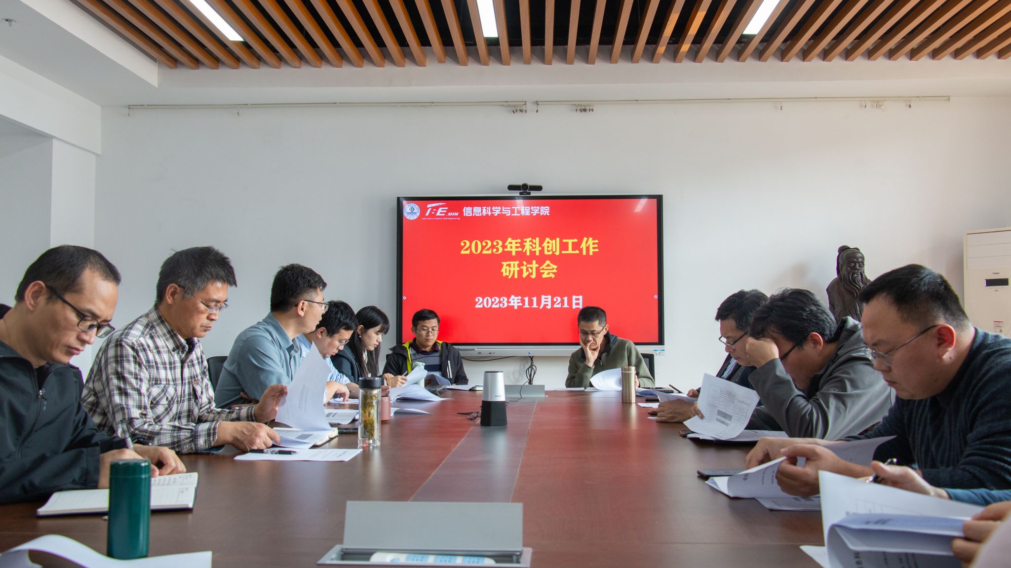 在12教704召开2023年科创工作研讨会。学院党政领导班子成员、全体学工人员和科创教师代表三十余人参加会议。会议由学院党委副书记、副院长郝伟主持。
