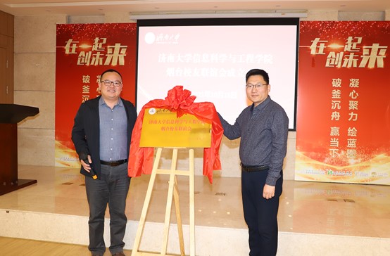 党委书记邱鲁军、副院长韩士元、办公室主任曲庆洋与烟台校友代表们同聚一堂,共同见证学院烟台校友会的成立。